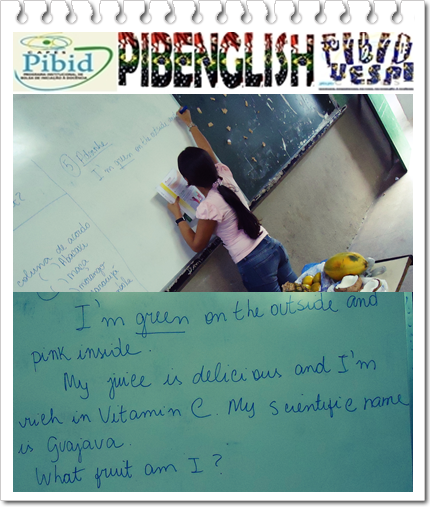 baixo que continha o nome da fruta em inglês e associar a imagem dela