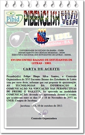 um convite de estudantes baianos, os quais mantive contato, trabalhamos em