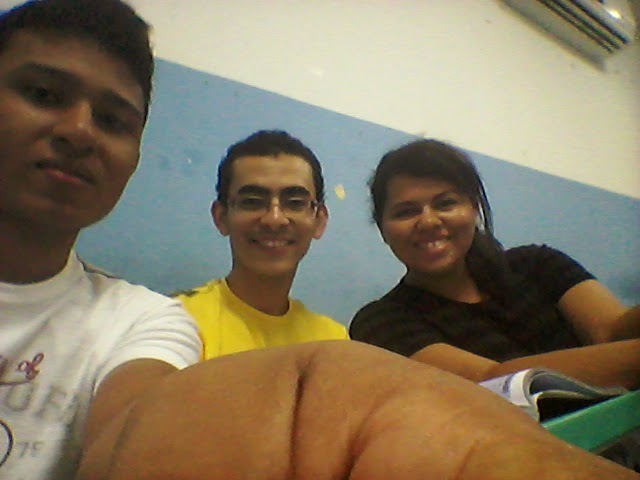 Bolsistas Alcides Silva, Tibério Sales e Paula Safira em sala de aula