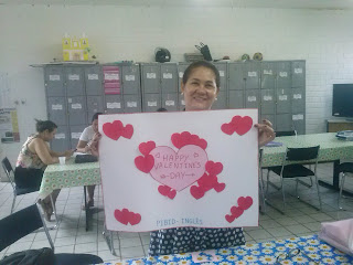 criaram cartazes em inglês, felicitando o dia dos namorados, foi usada a